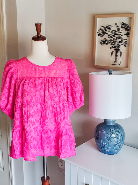 Hot Pink Textured BlouseHot Pink Textured Blouse