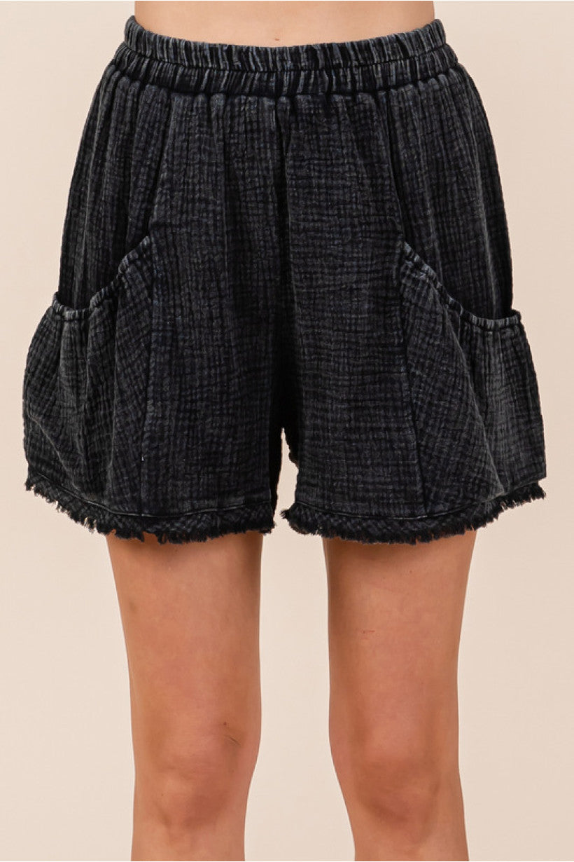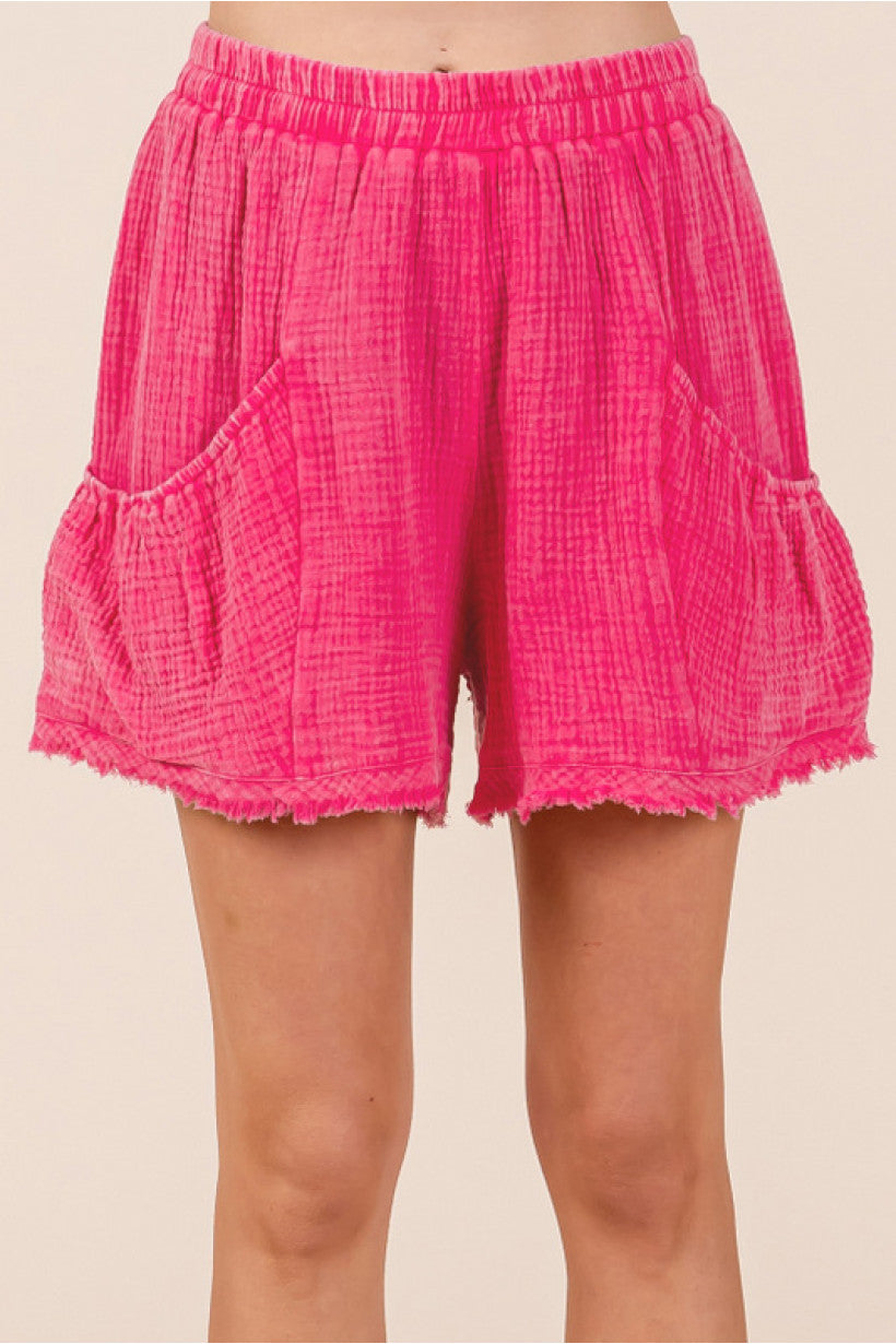 Fit and features: Woven, elastic waist provides stretch. Has pockets